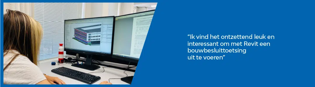 Als BIM-modelleur ben ik vooral bezig om, met de bijbehorende tekeningen, voor een project een bouwkundig model op te stellen dat voldoet aan de wensen van de opdrachtgever en aan de tekennormen van Bureau Bouwkunde. Ik heb een aantal keren de mogelijkheid gehad om in Revit een project te toetsen op het Bouwbesluit. Ieder bouwwerk dient te voldoen aan de minimale eisen van het Bouwbesluit. Al snel heb ik geconstateerd dat ik het ontzettend leuk en interessant vind om op die manier een bouwbesluittoetsing uit te kunnen voeren. Ik heb me eigen gemaakt hoe dit aan te pakken en welke normen volgens het Bouwbesluit van belang zijn.