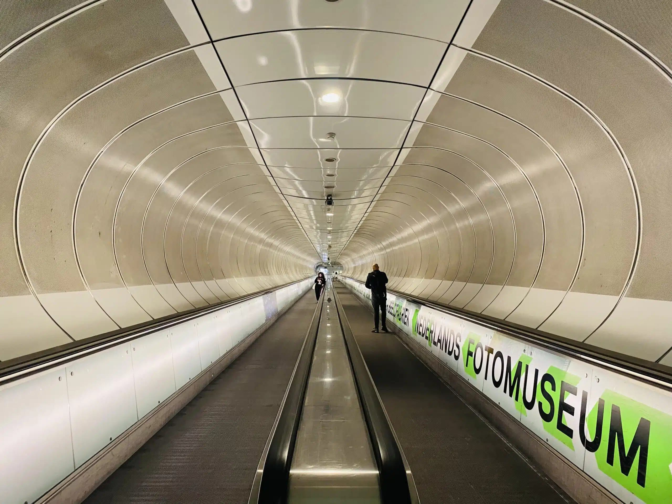 Ik steek over naar zuid, even doortrappen want de term ‘vals plat’ is behoorlijk van toepassing op de Erasmusbrug. Aan de overzijde kom ik aan op het Wilhelminaplein, waar zich het metrostation met dezelfde naam bevindt. Waar de Erasmusbrug noord en zuid bovengronds verbindt, doet onder de grond de metrolijn hetzelfde. In 1997 waren wij betrokken bij de bouw van dit metrostation.