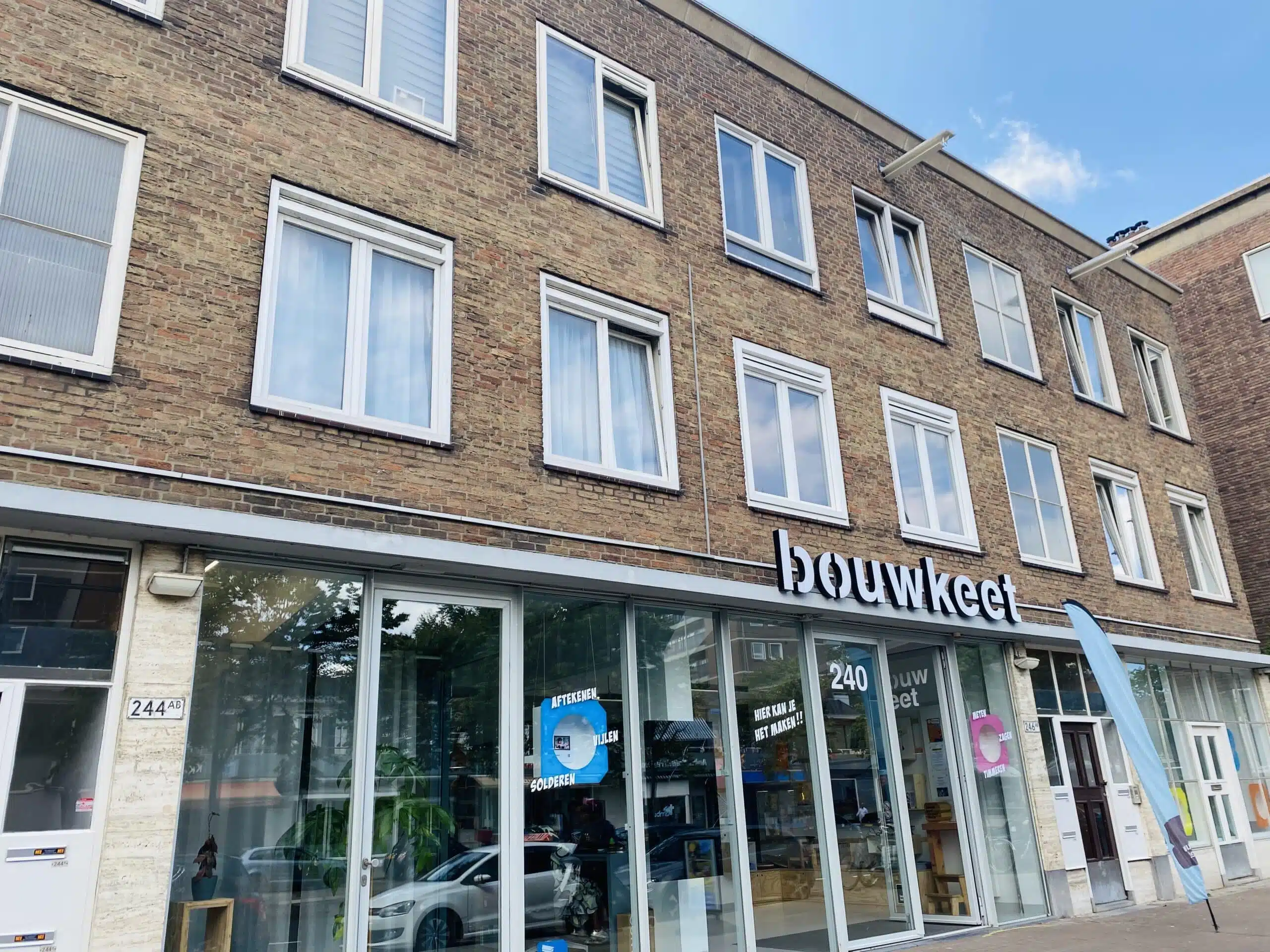 Vervolgens steek ik het Marconiplein over naar de Schiedamseweg. Op nummer 240 bevindt zich de Bouwkeet, een plek waar jongeren uit de buurt terecht kunnen voor allerlei creatieve activiteiten en workshops.