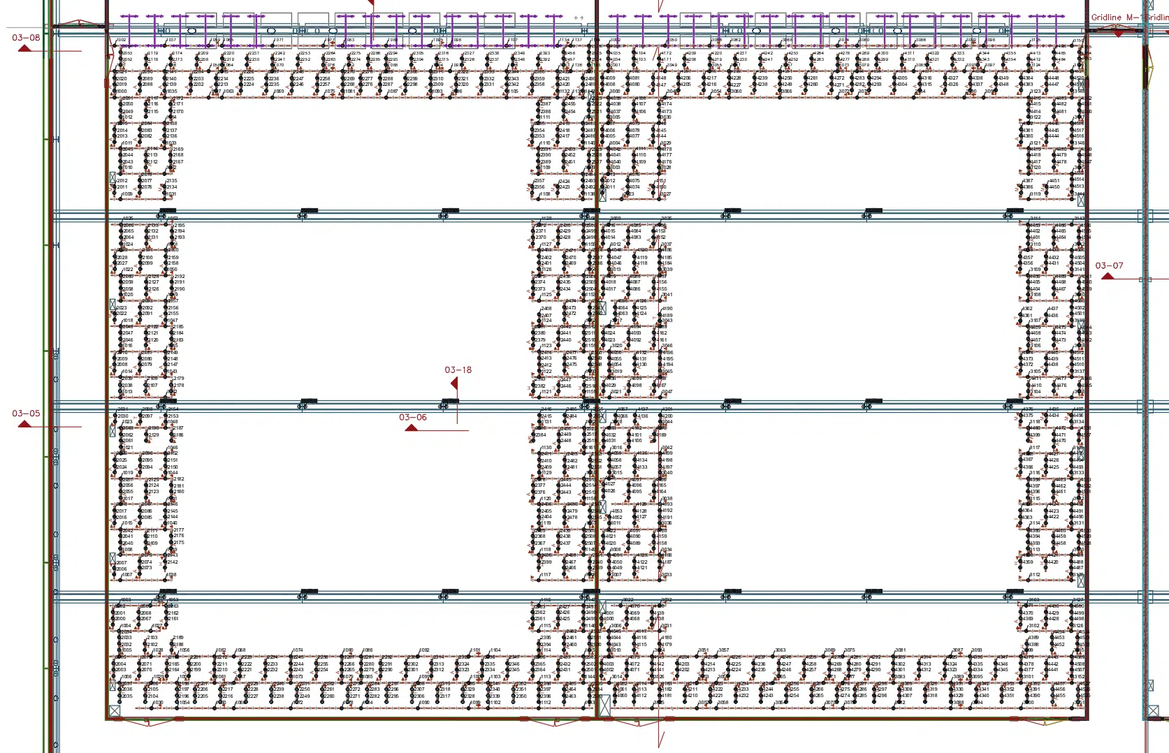 Het aanbrengen van de boorgaten voor deze ankerpunten luisterde vanzelfsprekend erg nauw. Ze moesten nauwkeurig worden aangebracht, waarbij er rekening werd gehouden met een kleine tolerantie en zonder dat de voorgespannen wapening van de kanaalplaten werd onderbroken. De vraag aan ons was om vanaf tekening de informatie aan te leveren voor de total station, waarmee deze de x y coördinaten van deze boorgaten zeer precies kon uitzetten.